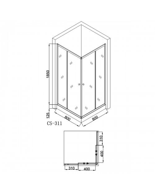 CS-311 800х800х1975 Душевое ограждение Loranto + поддон матовое стекло 8мм.