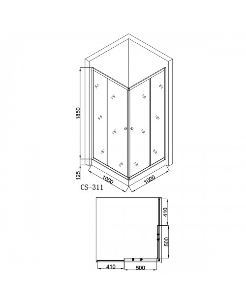 CS-311 1000х1000х1975 Душевое ограждение Loranto + поддон матовое стекло 6мм.