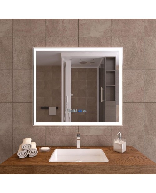 Accord 900*700 Зеркало с подсветкой, термообогревом и часами Caiman