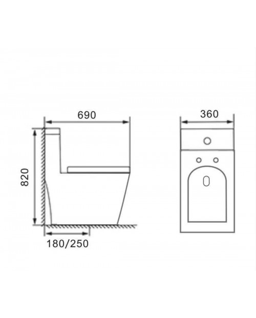 AN-021D Унитаз-моноблок (квадрат), Торнадо,690*380*800 мм с сиденьем (soft close) дюропласт, белый