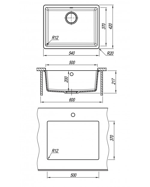 МАДЕНА 500 ЧЕРНЫЙ FS Кухонная мойка из кварц. композита / 540 * 420 * 217 "FLORENTINA"