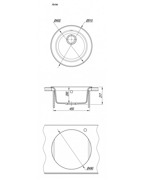 АНТИК 510 ЧЕРНЫЙ Кухонная мойка из кварцевого композита / 510 * 510 * 217 "FLORENTINA"