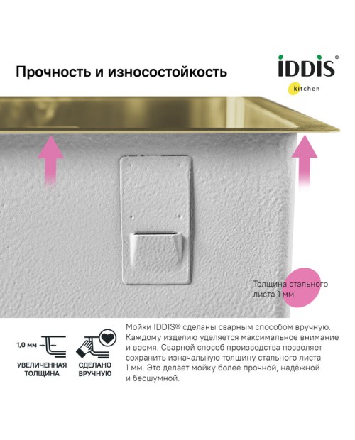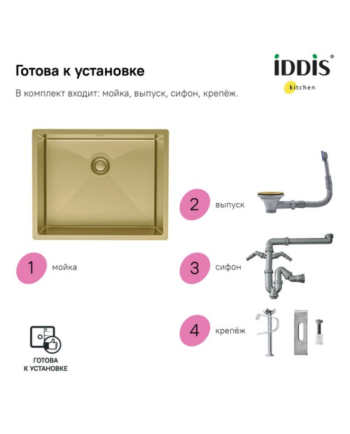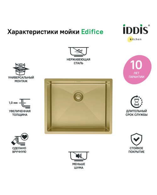Мойка универсального монтажа, EDI54B0i77 Золото матовое 540х440х200