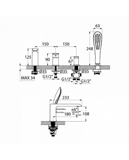 CALIPSO Смеситель врезной на борт ванны / 4 позиции "IDDIS"