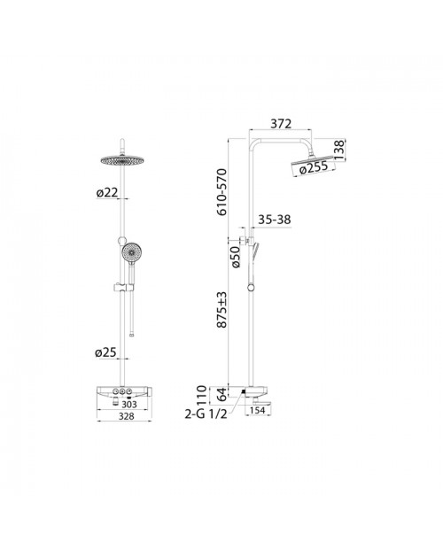 SHELFY / SHEWTBTi06 / (Белый матовый) Душевая система / 3 функции "IDDIS"