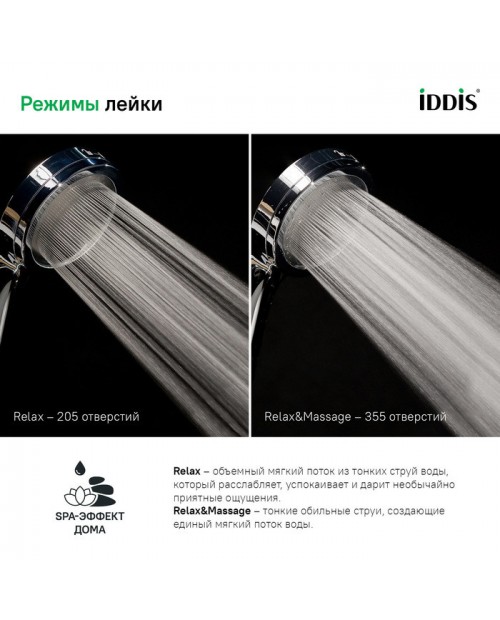 Хромированное покрытие ручной лейки IDDIS® устойчиво к коррозии, появлению царапин, сколов и потускнению. На протяжении многих лет они будут выглядеть как новые.