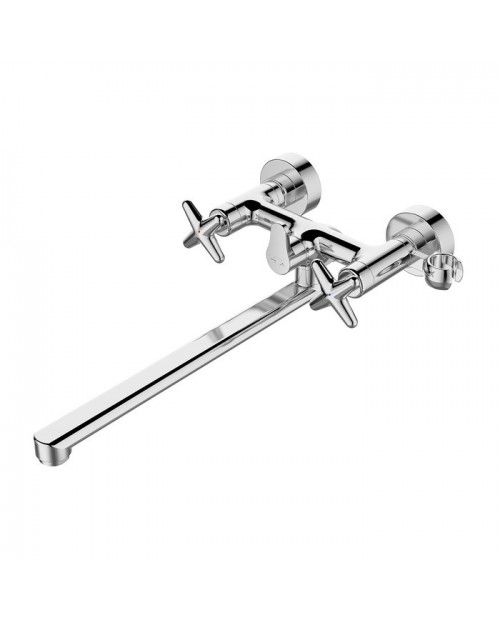 Продуманный синтез классического и современного дизайна элегантно воплощен в строгой форме смесителя для ванны из новой коллекции Acros. Фигурные ручки — модный тренд с тщательно проработанной эргономикой — не только обеспечивают удобную регулировку напора и температуры воды, но и выгодно выделяют данную коллекцию среди множества других. Наличие длинного (35 см) излива позволит увеличить функциональность полезного пространства ванны.