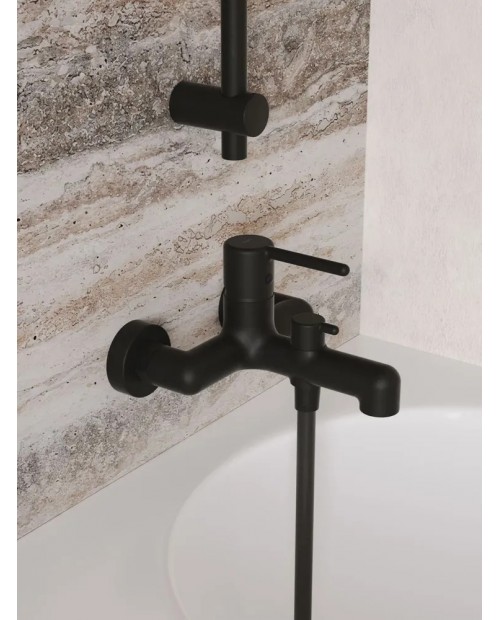 Стильный смеситель для ванны сочетает актуальный современный дизайн и популярный черный цвет. Тонкая удлиненная ручка добавляет изящества и комфорт в управлении. Расстояние между ручкой и изливом увеличено для большего удобства. Без душевых аксессуаров в комплекте.