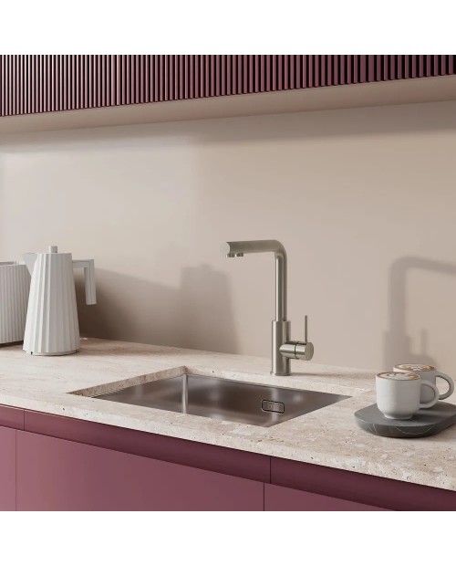Основной материал – сталь, что исключает разнотон смесителя с мойкой, обеспечивая их идеальную сочетаемость.
