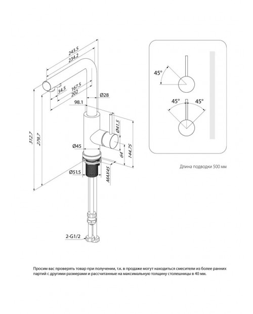 Изысканная ручка-джойстик – для включения обычной и фильтрованной воды. Угол открывания ручки – 90 градусов (45 градусов от себя – холодная вода, 45 на себя – горячая). Чтобы налить фильтрованной воды, нужно просто повернуть ручку в закрытом состоянии.
