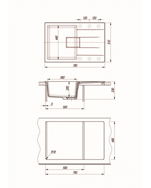 РИВЬЕРА 780 СЕРЫЙ ШЕЛК FS Кухонная мойка из кварц. композита / 780 * 510 * 230 "FLORENTINA"