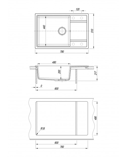 ЛИПСИ 780 XL ГРЕЙ FG Кухонная мойка из кварцевого композита / 780 * 510 * 217 "FLORENTINA"