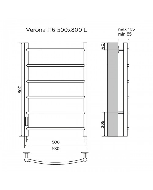 VERONA 500/800 Полотенцесушитель электрический L 6 пер. AZARIO