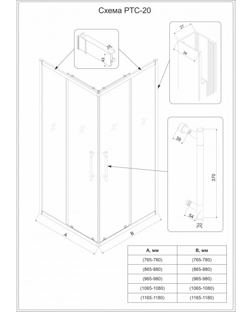1\2 PTC20-GR-80-01-C4 Душевой уголок квадратный 80*200 "VECONI design italiano"