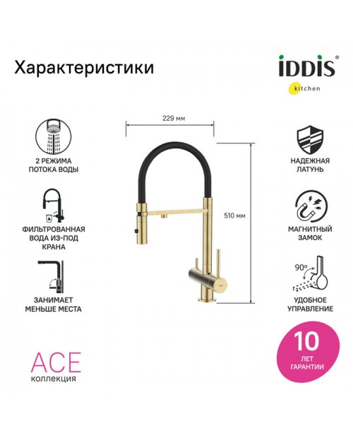 Смеситель для кухни, ACEMGFFi05 Золото матовое