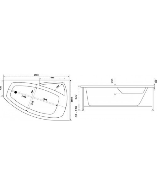 КАМЕЯ-PRO Ванна акр. 1,700 х 1,05 Правая с каркасом "BAS"