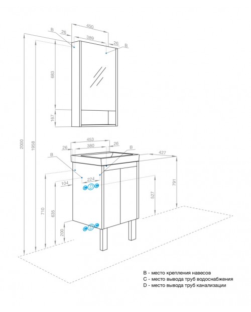СКАНДИ Doors 45 тумба Белый/Дуб Верона Под умывальник Адриана 45 "AQUATON"
