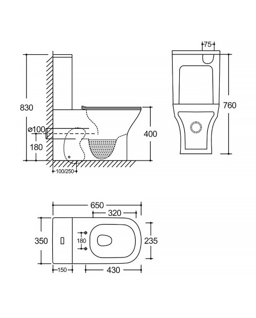 AZ-8502 Milagro Унитаз-компакт 350х650х830 напольный, безободковый, система смыва "Торнадо"