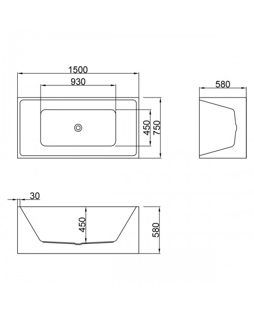 MODERN 1500x750x580 Ванна акриловая Azario отдельностоящая, в комплекте с сифоном и металлической ра