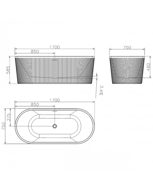 Reflejo 1700х750х585 Ванна акриловая Azario отдельностоящая, в комплекте с сифоном и металлической р