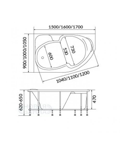 DIANA Ванна акриловая 150 * 90 - R на каркасе "1 МАРКА"